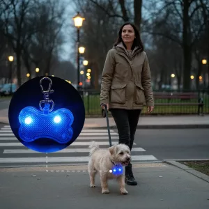 Nachtelijke wandelingen worden zorgeloos met deze slimme lichtgevende hanger. Bevestig de Primdog Bone Pendant in enkele seconden aan elke halsband met de stevige clip. Meerdere kleuren schijnen, zodat je huisdier altijd zichtbaar is buitenshuis.