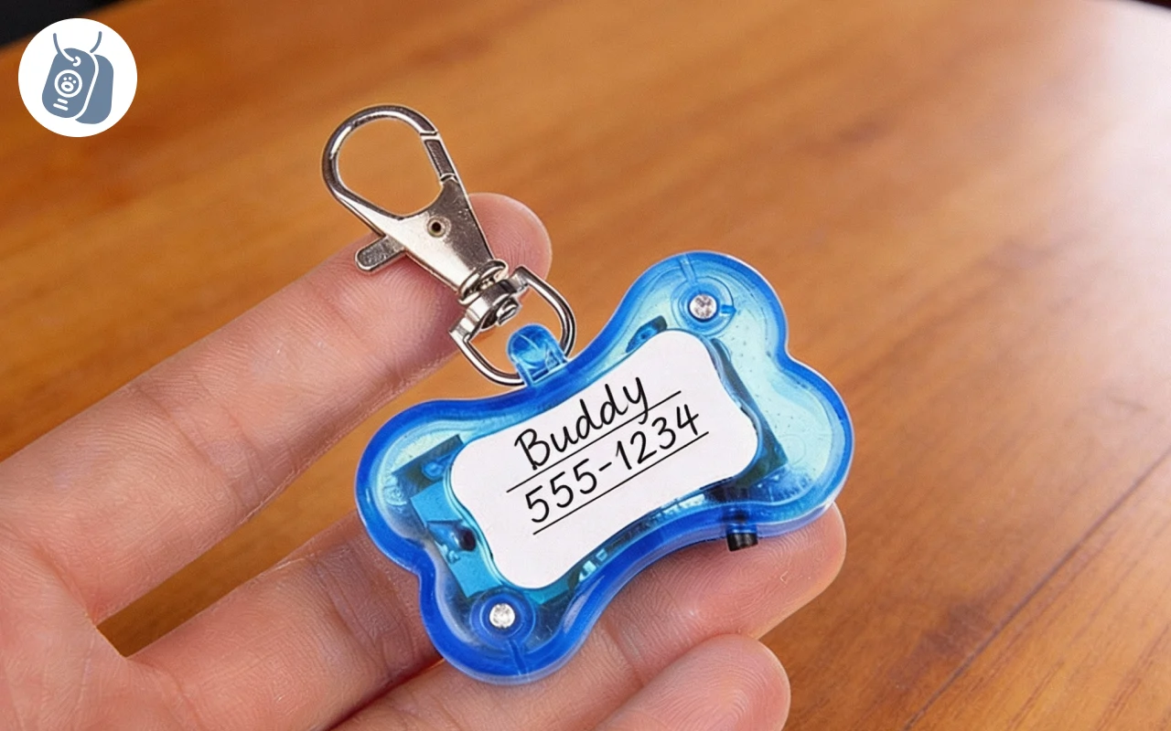 Schrijf belangrijke veiligheidsinformatie in de daarvoor bestemde ruimte. Snelle identificatie betekent dat verloren huisdieren sneller thuiskomen.