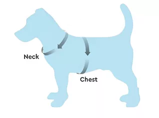 • 1. Meet met een meetlint vanaf de basis van de nek waar de halsband zit tot aan de basis van de staart.