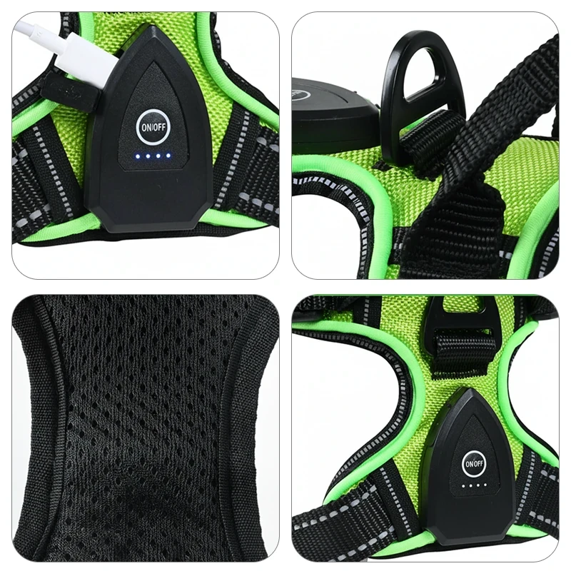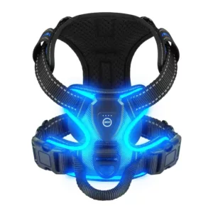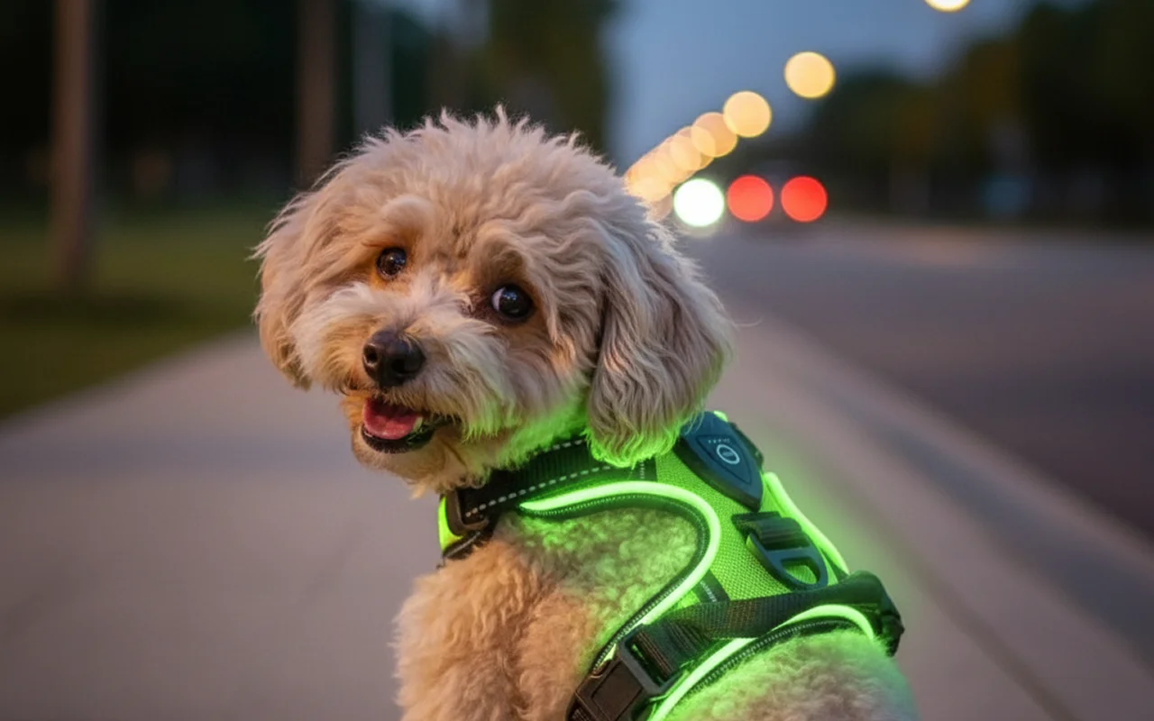Onze wandelingen zijn zoveel makkelijker sinds we dit tuigje gebruiken. De lampjes zorgen ervoor dat auto’s ons meteen zien, en mijn hond blijft koel en comfortabel.