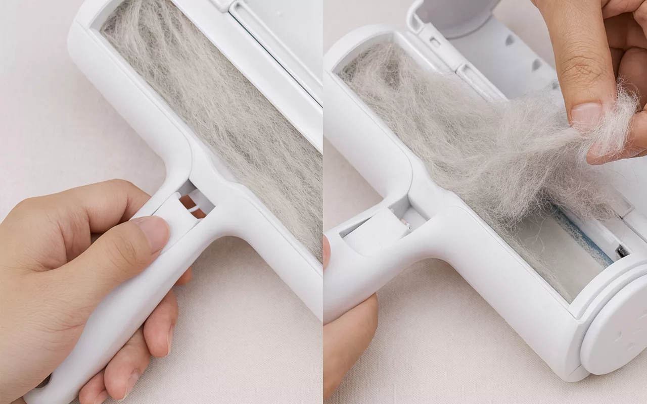 Verzamel snel losse haren van banken, dekens of kleding. Glijd over oppervlakken en zie direct zichtbare resultaten verschijnen.