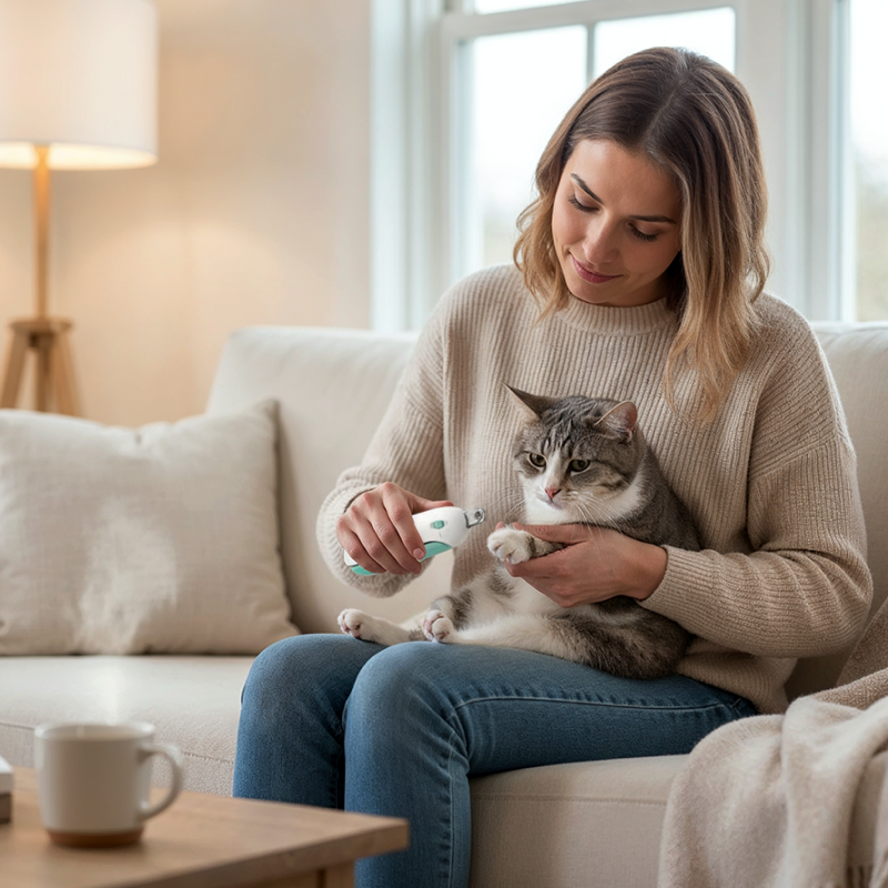 Eerst vond ik het eng om nagels te knippen, maar dit hulpmiddel maakte het veel minder eng. Het comfortabele handvat gaf me controle, en de nagels van mijn kitten waren glad en veilig.