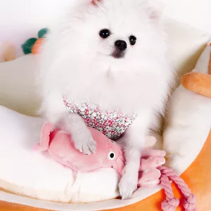 Het fleecemateriaal voelt knus voor mijn kleine hond. Ze houdt hem de hele dag in haar bek en is dol op het zachte piepje in de kop.