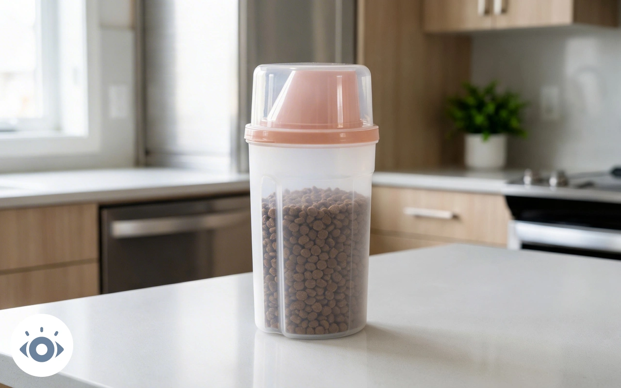 Ik was het zat om overal kruimels van dierenvoer te vinden. Dit lost dat op! Het strakke deksel houdt ook echt het vocht buiten.