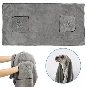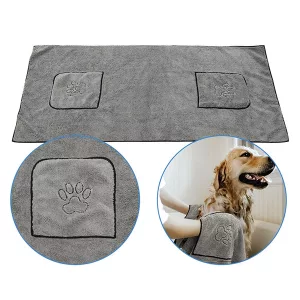 Onze badhanddoek heeft twee zakken, wat het droogproces vergemakkelijkt. Je kunt je handen in de zakken steken om je huisdier grondig af te drogen.