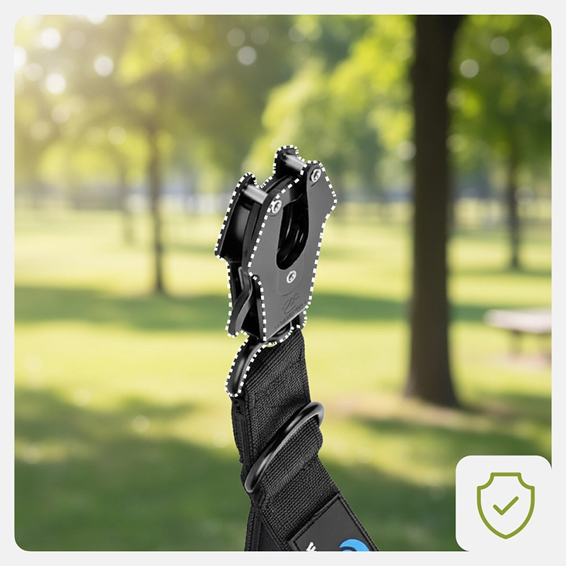 Snelle clip verbindt of ontkoppelt in slechts enkele seconden. Geen gedoe tijdens dringende momenten of bij het instappen in voertuigen.