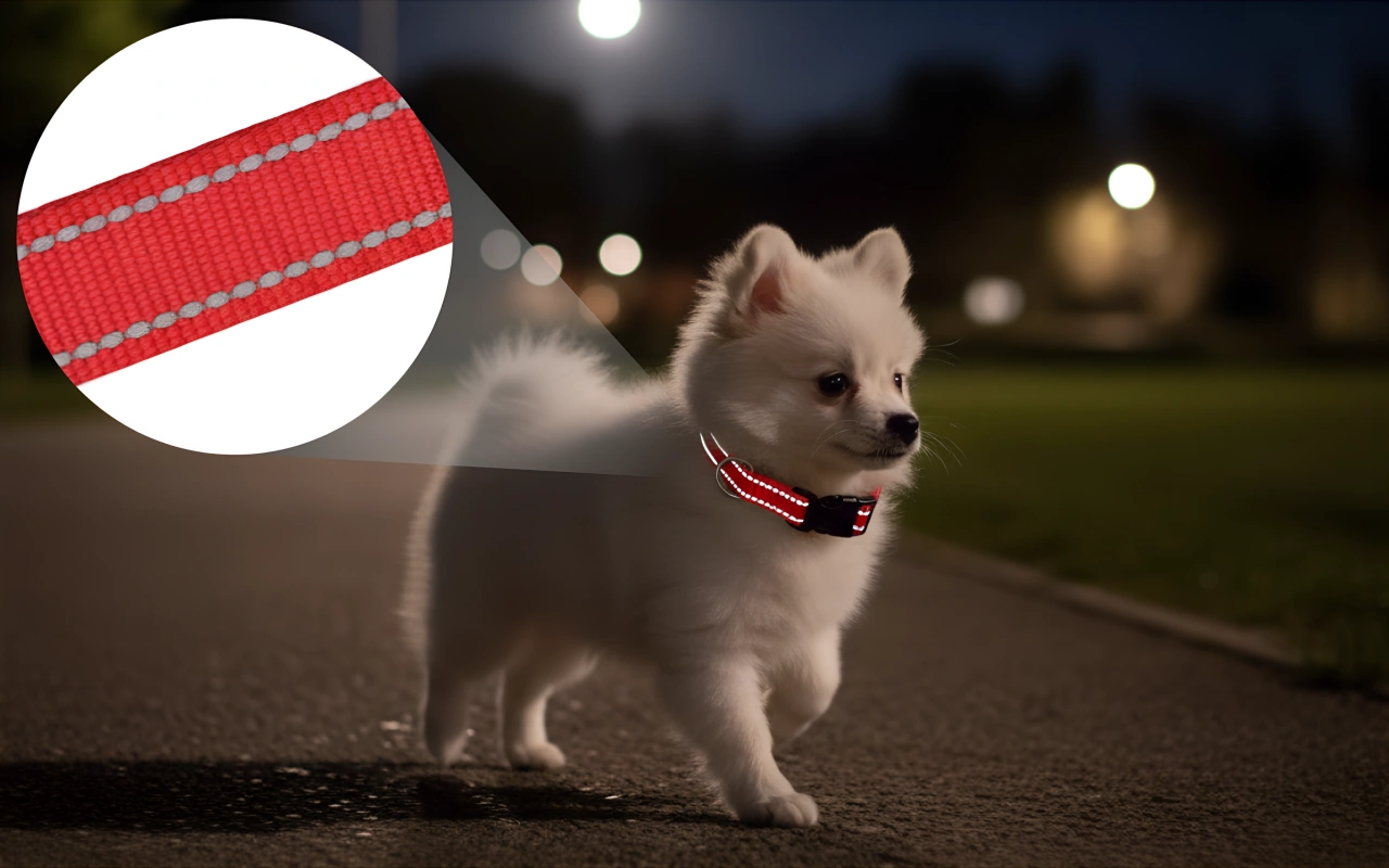 Reflecterende stiksels lichten fel op, zelfs bij weinig licht. Huisdieren blijven zichtbaar voor automobilisten en fietsers na zonsondergang.
