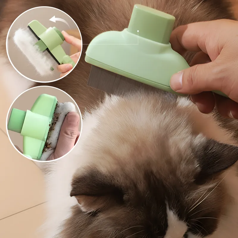 pet comb, cat comb, self cleaning cat brush, dematting comb, cat deshedding tool, cat grooming brush