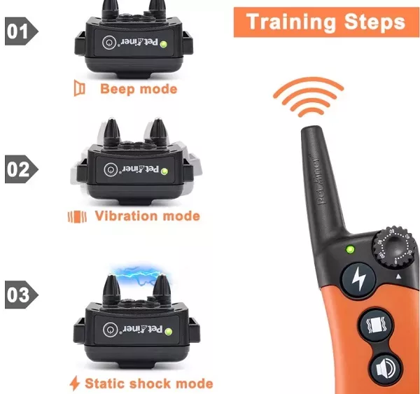 Je kunt snel een beloning geven in de vorm van het goede gedrag van je huisdier met 3 trainingsmodi: piep, trillen of shock. De trillings- en shockmodi hebben 100 verschillende intensiteitsniveaus!