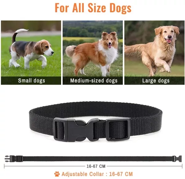 ✔️ VERSTELBARE HALSBAND — Perfect geschikt voor kleine, middelgrote en grote honden. Daarnaast is hij waterdicht, zodat je in elke omgeving kunt trainen.