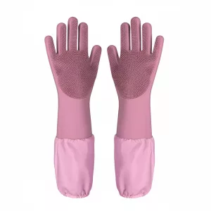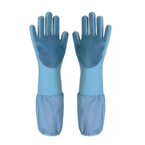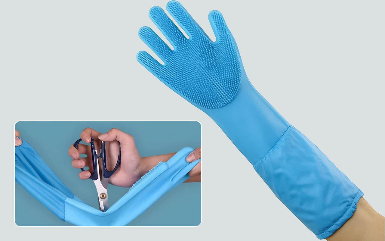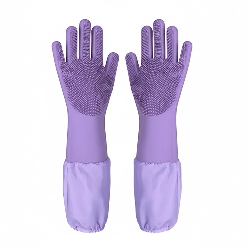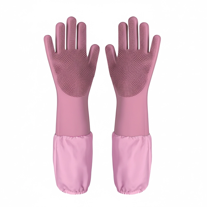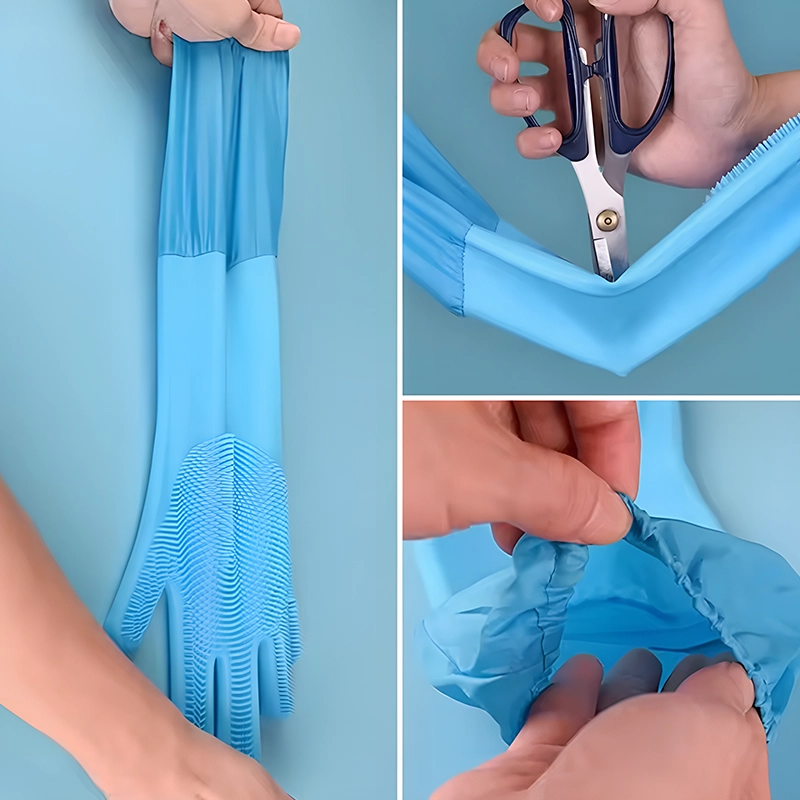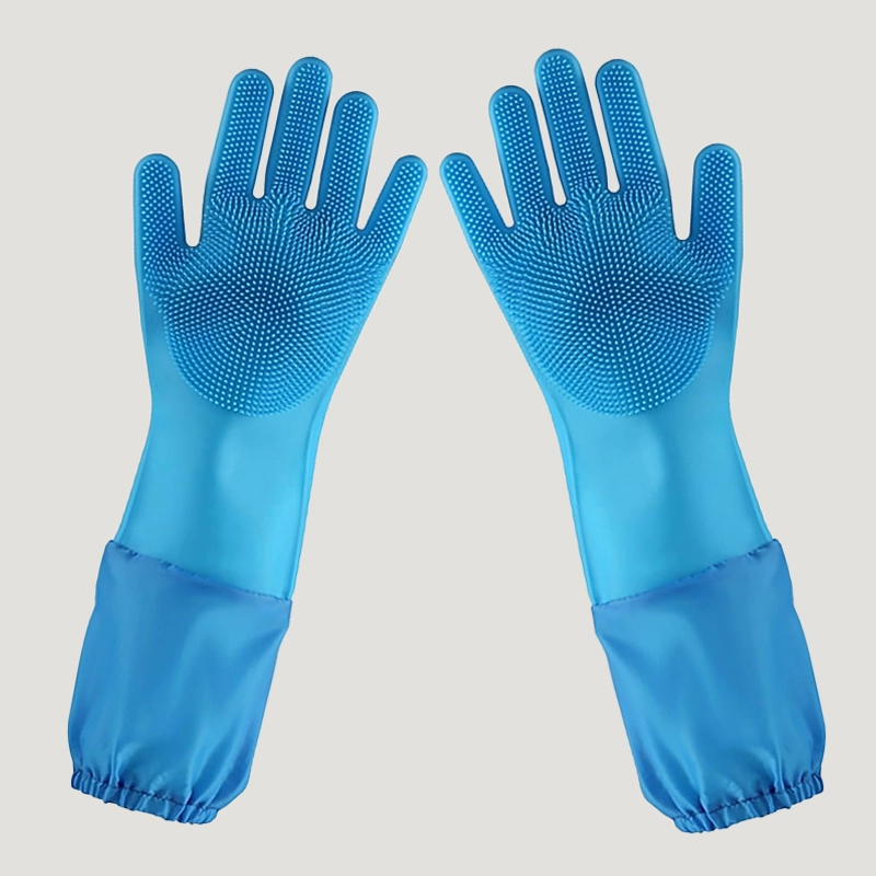 Sterk siliconen houdt de huid droog en beschermt je armen tegen water. Geen agressieve chemicaliën komen in aanraking met je huid tijdens het wassen.