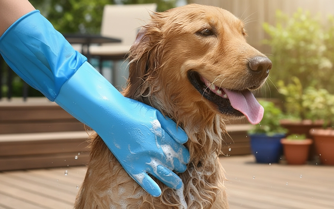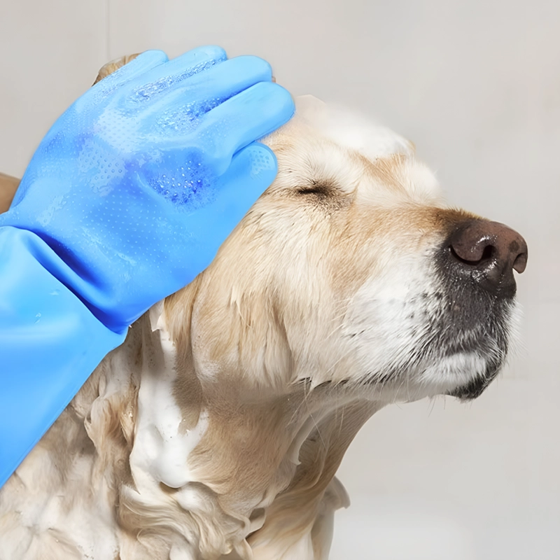 Deze verzorgingshandschoenen maken badtijd makkelijk voor mijn hond. Hij blijft rustig en vindt het zelfs leuk! Zo blij dat ik deze voor de wekelijkse wasbeurten gevonden heb.