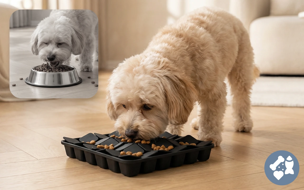 Huisdieren nemen kleinere happen, waardoor gevaarlijk schrokken of ongelukken worden voorkomen. Langzamer eten betekent minder kans op buikpijn na het voeren.