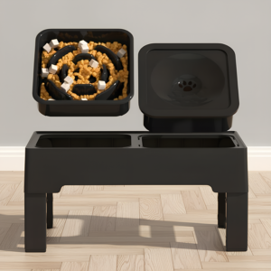 Dubbele Hondenvoerbak met Standaard voor Slow Feederen