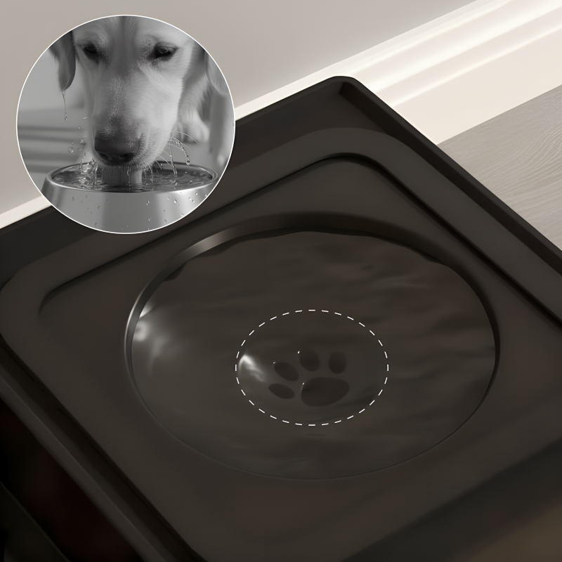 Opstaande randen voorkomen dat water of brokjes op de vloer eromheen terechtkomen. Geniet van een frisse, nette voerplek die langer droog en schoon blijft.