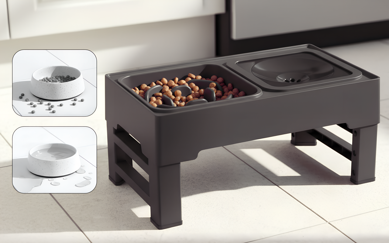 Huisdieren verdienen een nette plek voor elke maaltijd waar ze van genieten. Schoonmaken kost maar een paar seconden dankzij slimme onderdelen die eenvoudig uit elkaar te halen zijn. Verstelbare hoogte zorgt elke dag voor minder rommel en meer comfort. Een stevig, stabiel frame houdt de voerbakken op hun plaats, zelfs bij enthousiaste eters.