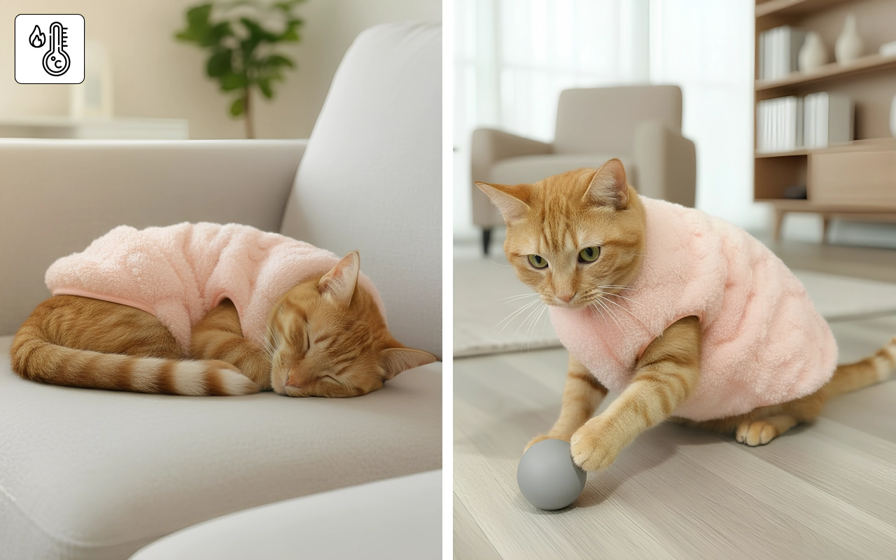 De fleecelaag werkt fantastisch in de winter. Mijn katje bibbert normaal gesproken, maar met deze trui is hij veel gelukkiger en levendiger.