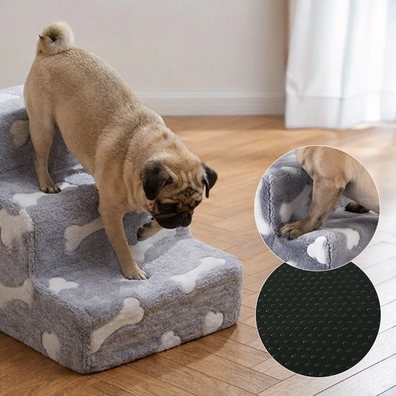 Mijn mopshond kan eindelijk zelf op het bed komen zonder dat ik hoef te helpen. De trap voelt zacht en stevig, dus ik weet zeker dat hij elke keer veilig is.