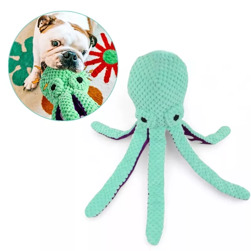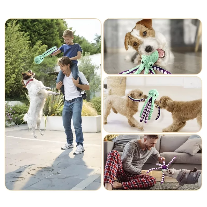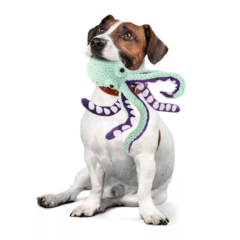 Mijn hond is helemaal gek op deze octopus kauwspeeltje. Hij draagt het overal mee naartoe en het piepgeluid maakt hem elke dag enthousiast!