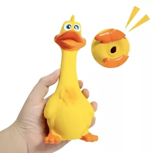 Mijn hond kan niet genoeg krijgen van deze leuke piepende eend. Het stimuleert het spelen en houdt haar bezig en actief. Een totale overwinning voor ons!