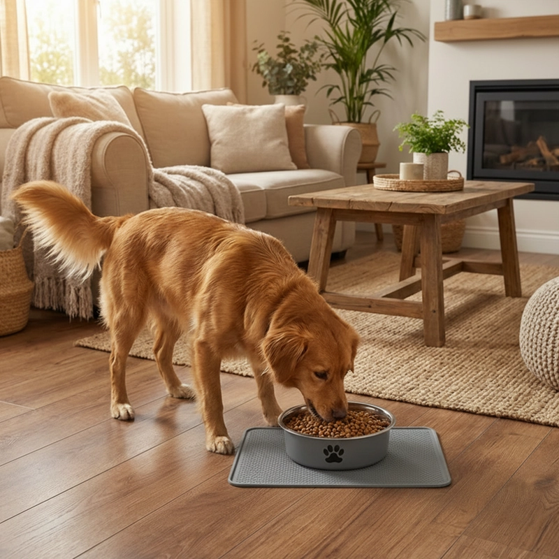 Speciaal siliconen basis houdt de bak op zijn plaats tijdens het eten. Huisdieren genieten van hun maaltijd zonder glijden of morsen door de kamer.