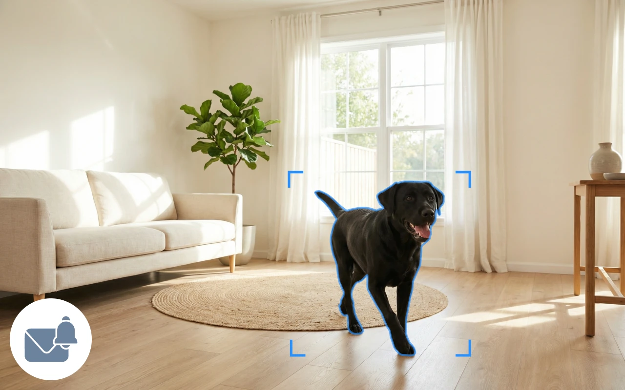 Ontvang direct meldingen wanneer er beweging thuis wordt gedetecteerd. Aangepaste zones voorkomen valse alarmen door dagelijkse activiteiten.