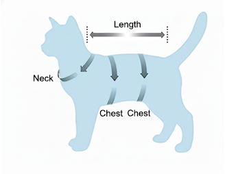 - 1. Meet met het meetlint van de basis van de nek waar de halsband zit tot aan de basis van de staart.