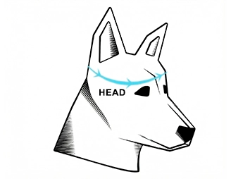 • 1. Wikkel het meetlint rond het breedste deel van het hoofd van de hond, net voor de oren.
