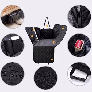 De perfecte oplossing voor reizen met mijn harige vriend. De waterdichte functie werkt uitstekend en het dient ook als een hangmat. Het is betrouwbaar en het geeft me gemoedsrust in de wetenschap dat mijn autostoelen beschermd zijn.