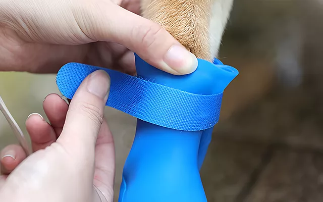 Het aantrekken van deze schoenen bij je huisdier is heel eenvoudig.