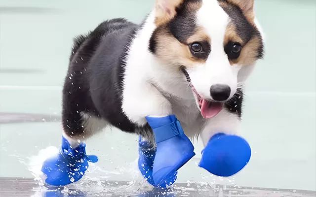 Plassen zijn geen probleem meer met onze hondenschoenen. Ze zijn waterafstotend en houden de poten van je huisdier droog bij nat weer.