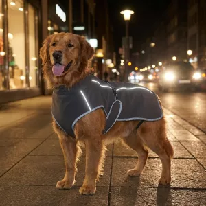 De eerste keer uitgeprobeerd op een mistige ochtend en auto’s konden mijn labrador nog steeds zien! Ik vind het fijn dat het niet stijf aanvoelt.