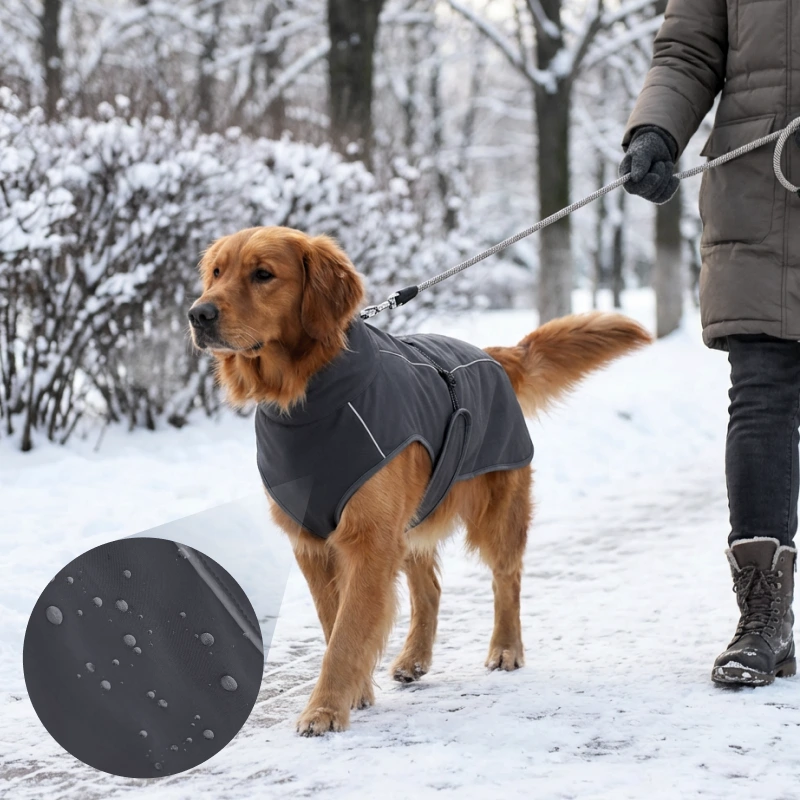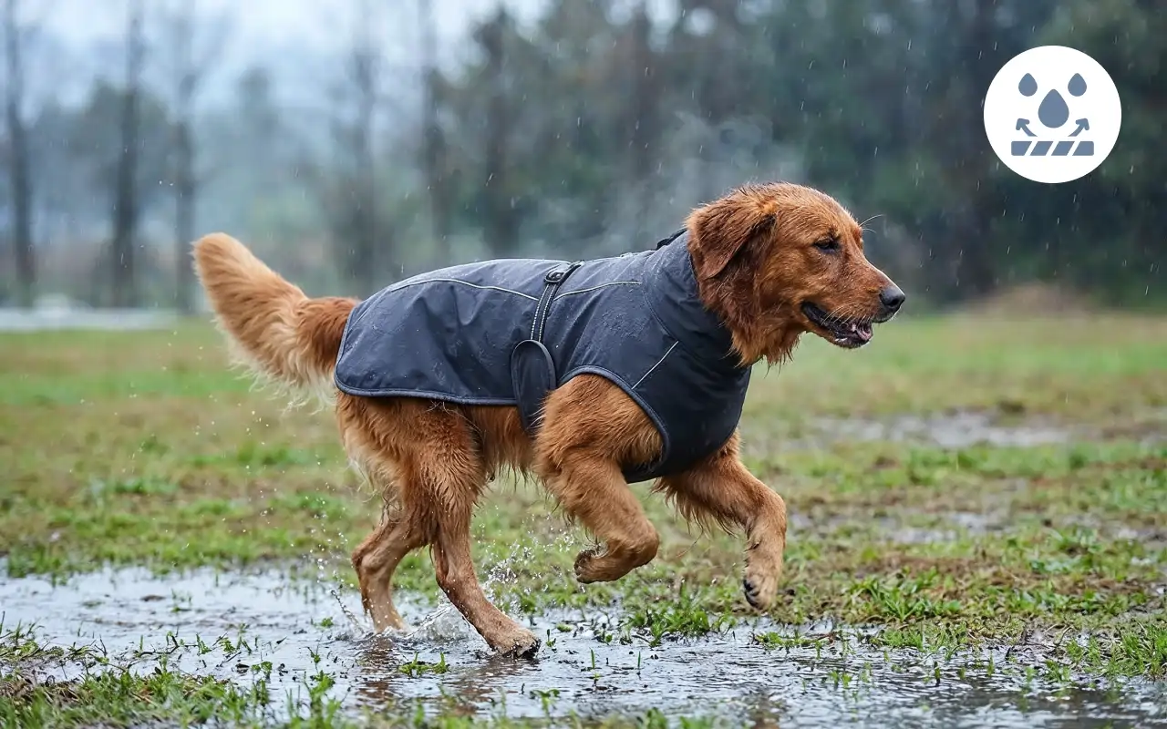 Stoffen voorkomen dat water doorlekt na regen of sneeuw. Honden blijven droog, blij en klaar voor plezier overal.